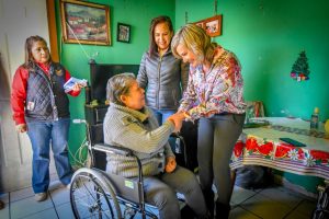 Personas en su mayoría de la tercera edad de colonias como Villarreal, Acoros II, Año 2000 y Ampliación Lázaro Cárdenas, fueron visitadas personalmente por la Alcaldesa, acompañada del Presidente Honorario del DIF Municipal Franco González y Patricia Alejandra Franco, quienes entregaron 4 sillas de ruedas nuevas.
