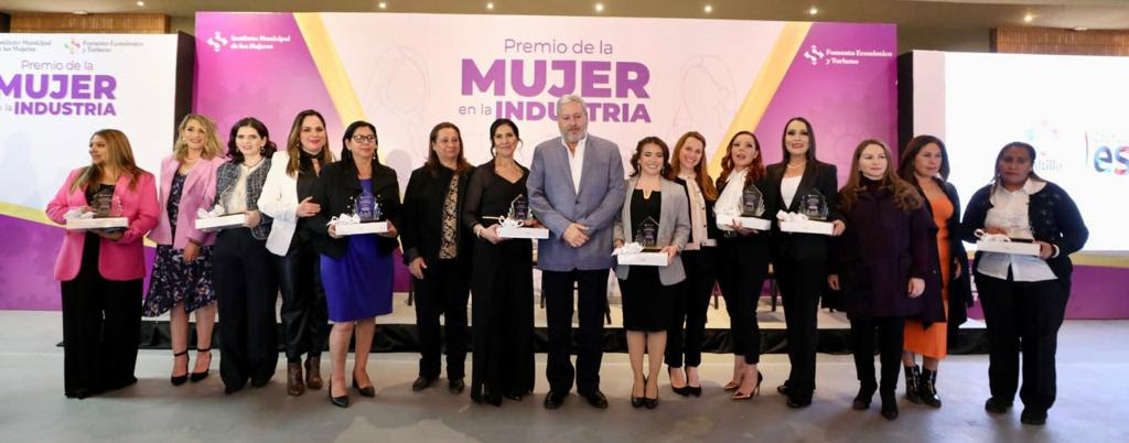 El Alcalde entregó el Premio a la Mujer en la Industria a Perla del Rosario Becerra Sosa, en la categoría Trayectoria Profesional; Linda Andrade González, Productividad y Calidad; Lourdes Cobos Cabrera, Visión Estratégica y Liderazgo; Alma Rosa Aguilar Casar, en Innovación e Industria 4.0; Imara Enríquez Espinoza, en Impulso STEM (Ciencia, tecnología, ingeniería y matemáticas).