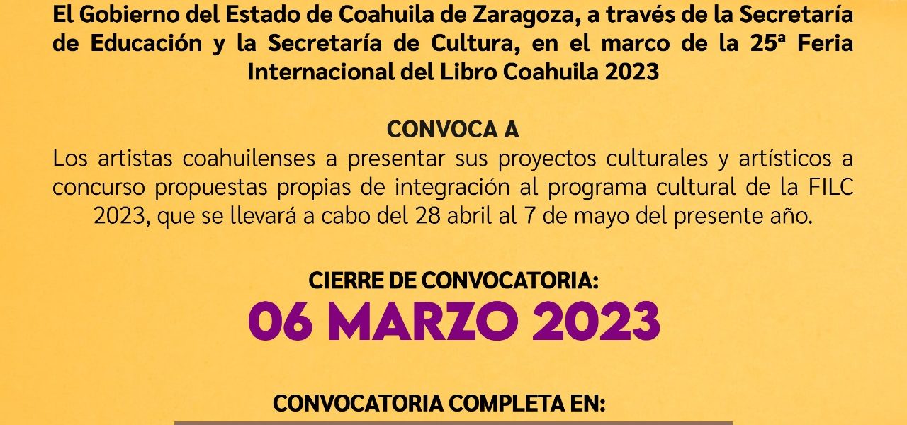 CONVOCA COAHUILA A ESCRITORES Y ARTISTAS  A PARTICIPAR EN LA FILC 2023
