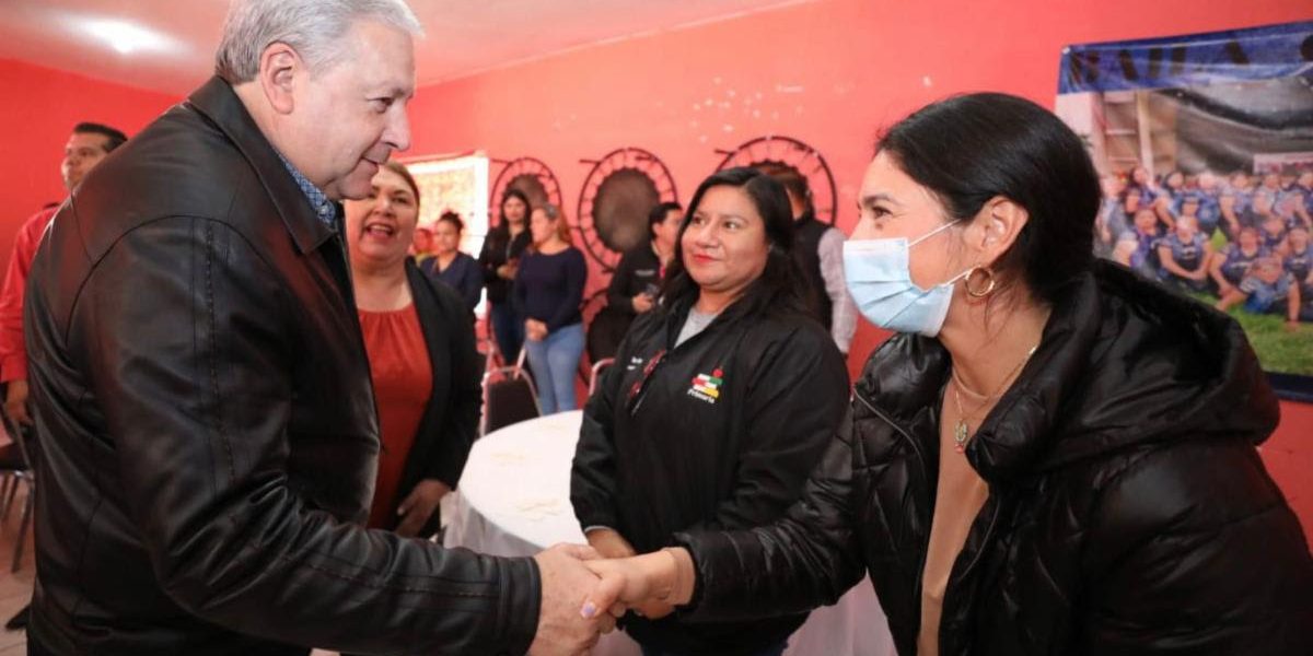 El alcalde Chema Fraustro, en compañía de su equipo, aprovechó la visita y supervisión de la Macrobrigada para compartir los tamales con los asistentes, como parte de la tradición del Día de la Candelaria.