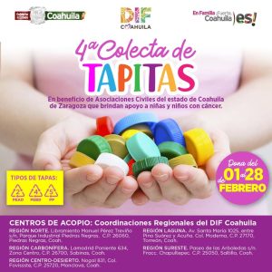ARRANCA DIF COAHUILA COLECTA DE TAPITAS A BENEFICIO DE OSC’S QUE ATIENDEN A NIÑOS CON CÁNCER