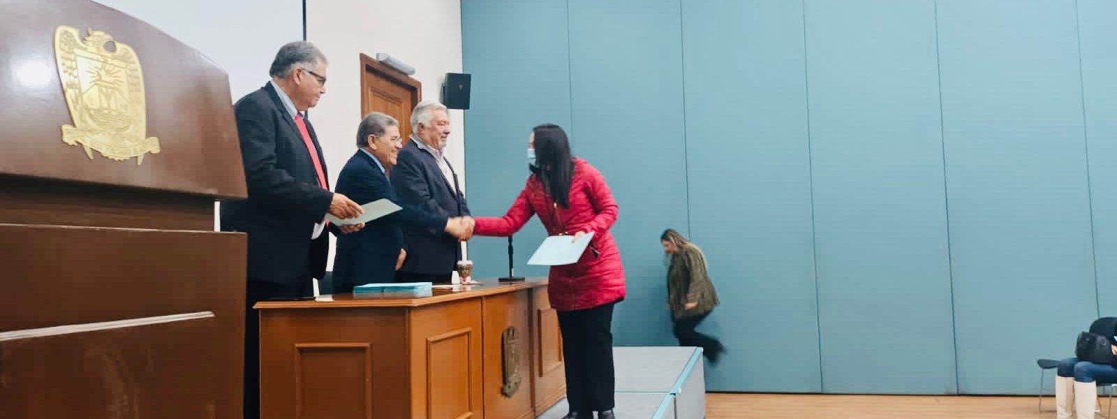 La entrega se llevó a cabo en la Sala de Seminarios de la Unidad Norte, a donde asistió el rector de la máxima casa de estudios, Salvador Hernández Vélez, el coordinador de la Unidad Norte, Luis Carlos Talamantes Arredondo, así como los docentes certificados.