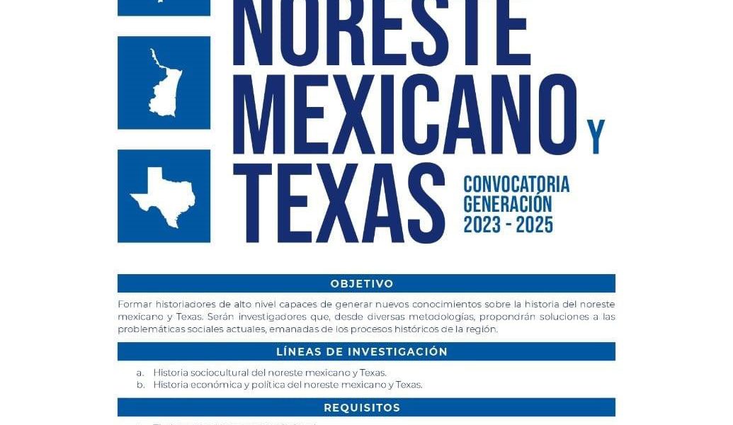 Los requisitos que deben cumplir son: Título o acta de examen profesional, tesis de licenciatura, documento que demuestre que obtuvo un promedio mínimo de 85 en sus estudios de licenciatura, currículum vitae, proyecto de investigación histórica sobre el noreste de México y/o Texas que aborde algunos de los siguientes temas: género, educación, medio ambiente, procesos históricos urbanos y/o rurales, migración, identidad, cultura, economía, historia regional y teoría de la historia.