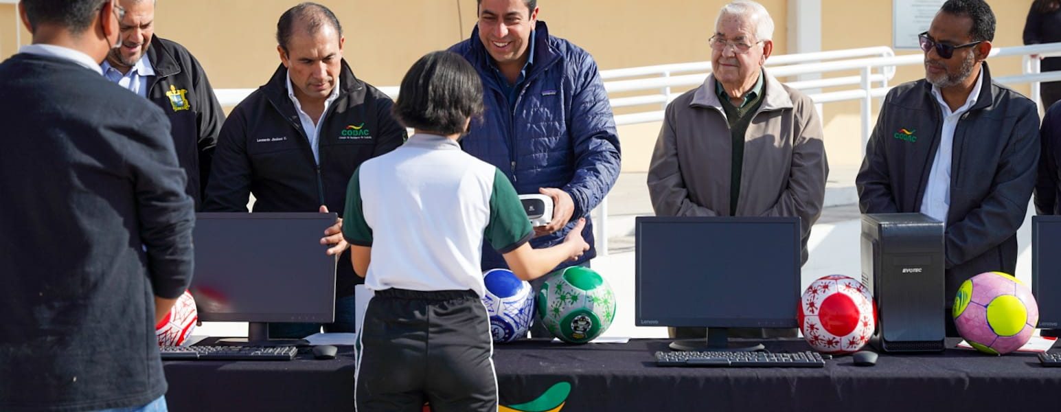 Con la asignación del equipo de cómputo, mobiliario y material deportivo en el COBAC Ramos Arizpe, se llegó a 36 instituciones educativas en Ramos Arizpe apoyadas por “Mejora tu Escuela” en lo que va de la presente administración.