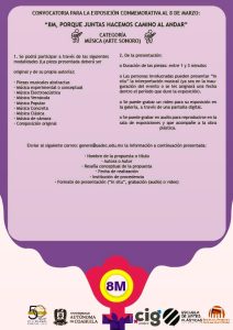 Este acontecimiento enmarca los esfuerzos y la lucha de las mujeres por contar con igualdad salarial respecto a los hombres y mejorar sus condiciones laborales, así como el voto femenino, la despenalización del aborto, la libertad sexual o maternidad, por ello las piezas artísticas que formarán parte de la exposición deben hacer alusión a la lucha de las mujeres.
