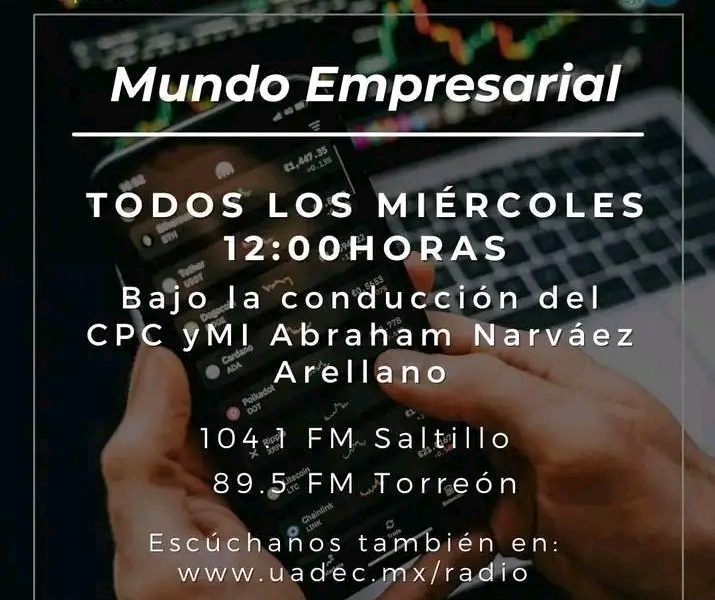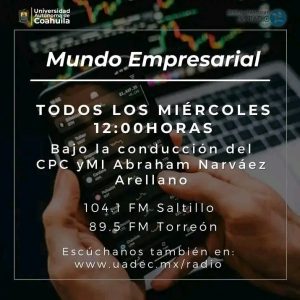 “Mundo Empresarial” se transmite todos los miércoles a las 12:00 del mediodía a través del 104.1 FM de Radio Universidad Saltillo y por internet en www.uadec.mx/radio