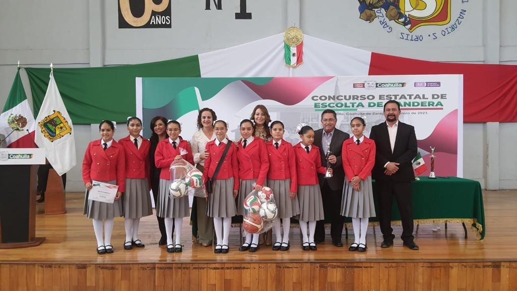 23 febrero 2023; Saltillo, Coahuila.- Con el propósito de enaltecer los valores cívicos y el sentimiento nacional, la Secretaría de Educación de Coahuila, (SE) a través de la Subsecretaría de Educación Básica, llevó a cabo el “Concurso Estatal de Escoltas de Bandera”, en el que participaron las cinco regiones del estado.