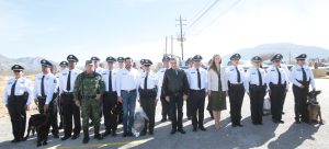 23 febrero 2023; Arteaga, Coahuila.- El gobernador Miguel Ángel Riquelme Solís acompañó a Ramiro Durán García, Alcalde de Arteaga, en el evento en el que se pusieron en marcha las operaciones del Centro de Control y Comando (C2), ceremonia en la que además se entregaron patrullas y equipamiento a la Policía Municipal, todo con una inversión superior a los 4 millones de pesos.