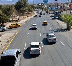 Sobre la avenida Presidente Cárdenas se trabaja con pintura de rayas blancas para la delimitación de carriles, así como en la instalación de vialetas reflejantes lo que generará una mayor seguridad vial.