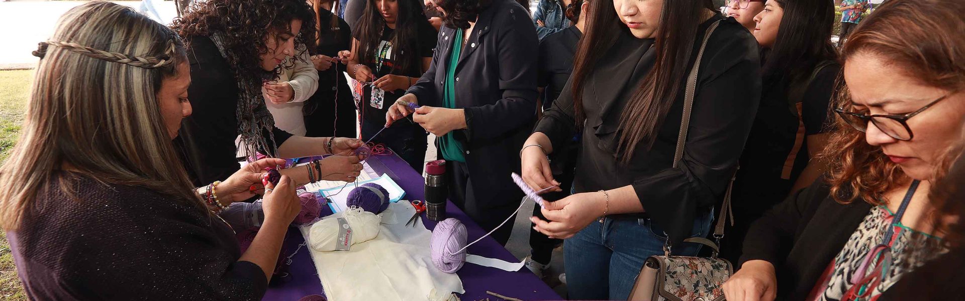 07 marzo 2023; Saltillo, Coahuila.- La Universidad Autónoma de Coahuila a través de la Coordinación de Difusión y Patrimonio Cultural (DPC), inició su Jornada Conmemorativa por el Día Internacional de la Mujer con “Trama Vívida”, que es un proyecto participativo de intervenciones textiles, espaciales y urbanas dirigido a mujeres de cualquier edad que entraman de forma individual o grupal, y que tiene como objetivo visibilizar y fortalecer sus redes de apoyo, encabezado por las artistas visuales Talía Barredo García y Laila Castillo Silva.