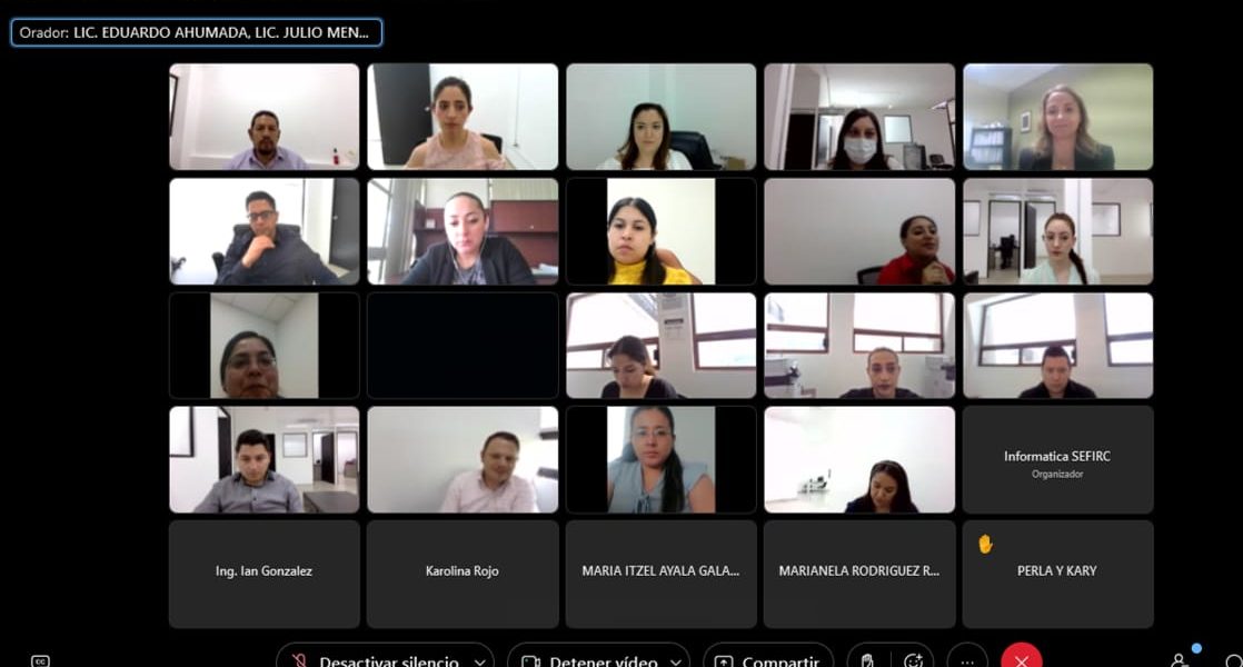 Atendiendo al compromiso establecido entre la Secretaría de Fiscalización y Rendición de Cuentas (SEFIRC) y el Centro de Conciliación Laboral para la implementación del Modelo Estatal de Control, y como parte de las acciones iniciales, se realizó una sesión virtual de capacitación, donde participó el personal de Dirección General, Delegación Regional Sureste, Laguna, Centro, Carbonífera, Norte I y II.
