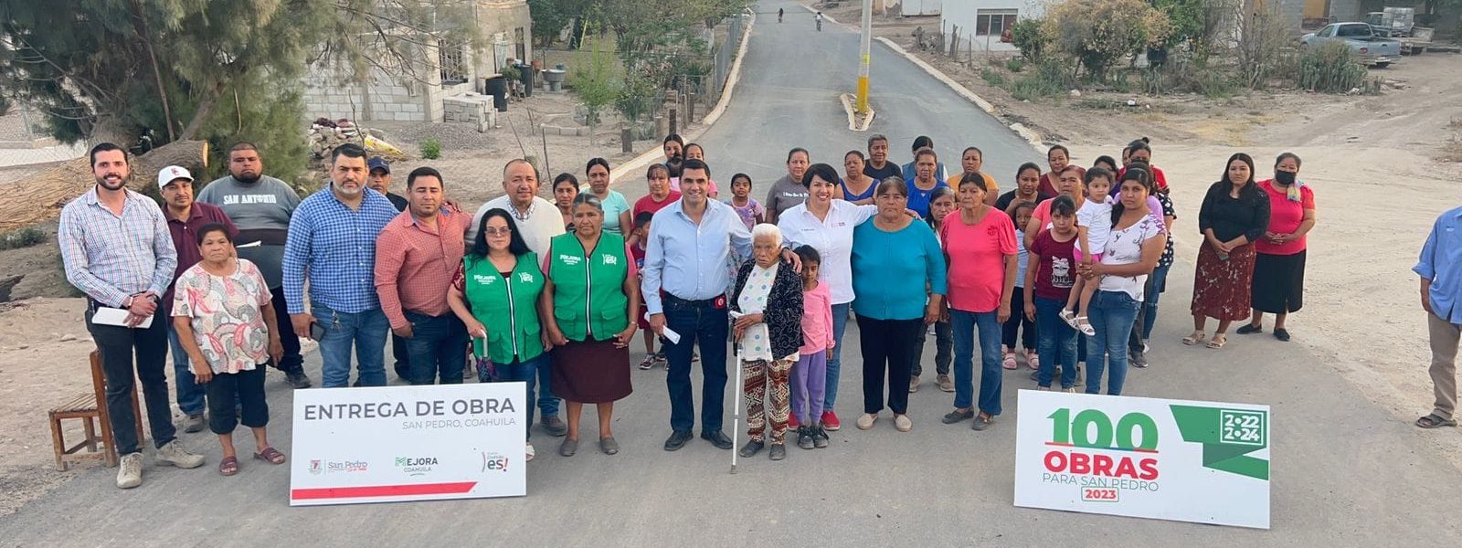 11 marzo 2023; San Pedro, Coahuila.-Gracias a la buena administración de los recursos municipales fue posible realizar la obra de la pavimentación asfáltica en el ejido el Venado, misma que fue entregada por el alcalde David Ruiz Mejía que impulsa el programa 100 Obras para San Pedro 2023.