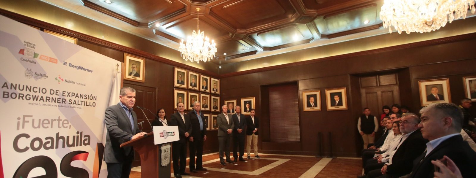 15 marzo 2023; Saltillo, Coahuila.- Al anunciar la expansión de la empresa Borgwarner-Saltillo, que invertirá 47 millones de dólares y generará 450 nuevos empleos, el gobernador Miguel Ángel Riquelme Solís reiteró que hasta el último día de su Administración se garantizará la seguridad, la tranquilidad y el respaldo a los inversionistas que determinen instalarse en la entidad.