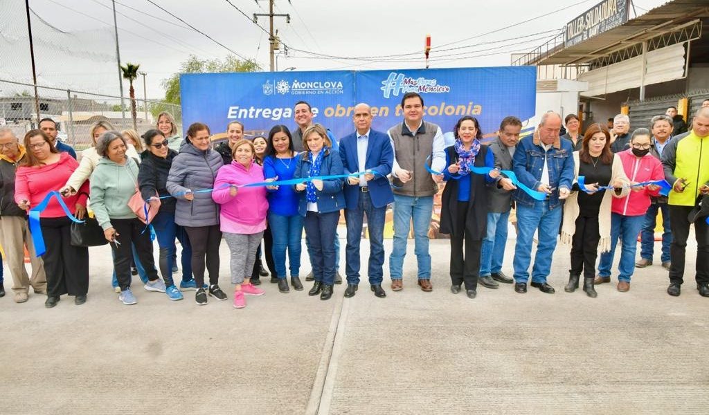 18 marzo 2023; Monclova, Coahuila.-El ayuntamiento entregó la calle Matías Ramos, totalmente pavimentada con concreto Hidráulico, los trabajos se hicieron entre las calles, Juan Tovar y Avenida Leandro Valle, fueron 900 metros cuadrados los pavimentados y 182 metros lineales de cordón trapezoidal; la inversión total fue de un millón 3 mil 998 pesos y es en beneficio de los vecinos de las colonias Leandro Valle y Elsa Hernández.