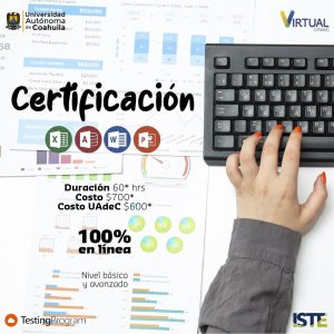 24 marzo 2023; Saltillo, Coahuila.- La Coordinación General de Educación a Distancia de la Universidad Autónoma de Coahuila, invita a certificarse internacionalmente en Microsoft Office a través de la plataforma Testing Program, el costo del curso por aplicación para el público en general es de $700 pesos y para trabajadores y estudiantes de la institución es de $600 pesos.