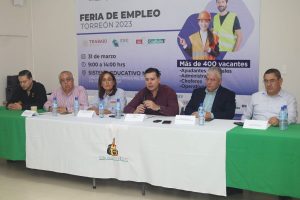 29 Marzo 2023; Torreón, Coahuila.- El Gobierno de Coahuila y el Ayuntamiento de Torreón, en coordinación con Ciudad Industrial de Torreón (CIT), el Sistema Educativo Nexus y la Cámara Nacional de Comercio (CANACO), llevarán a cabo la Feria de Empleo Torreón 2023.