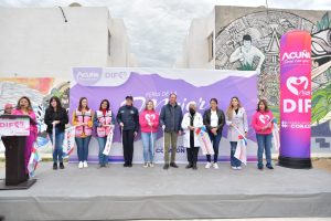 Al banderazo asistieron, entre otras, las directoras de Salud y de Seguridad Pública María de Jesús Vargas Castillo y Beatriz Chapa Ramos; la directora de la asociación civil Opciones Dignas Mayela Chávez Burciaga.