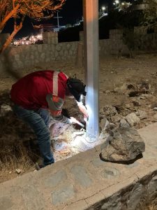 07 Abril 2023; Torreón, Coahuila.- Además del monitoreo permanente del funcionamiento correcto del sistema de alumbrado de la ciudad, la Dirección Servicios Públicos, enfocó durante dos días actividades de supervisión y mantenimiento en las luminarias que se encuentran en los accesos al Cristo de las Noas, en la vialidad que conduce a la parte alta del Santuario y en las colonias aledañas.