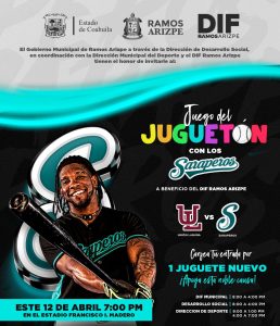 11 Abril 2023; Ramos Arizpe, Coahuila.- Este miércoles 12 de abril, Saraperos de Saltillo y Unión Laguna se enfrentarán en un juego a beneficio del DIF Ramos Arizpe.