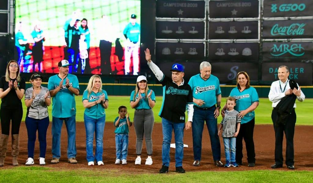 El gobernador Miguel Ángel Riquelme Solís lanzó la primera bola del encuentro, y estuvo acompañado por Marcela Gorgón, Presidenta Honoraria del DIF Coahuila; José María Fraustro Siller, Alcalde de Saltillo; José Roberto Cárdenas Zavala, Director General del DIF Coahuila; Édgar Zerrweck, Director General de Saraperos de Saltillo; Miguel Valentín Gámez, Gerente Deportivo de Acereros de Monclova; y Jorge Verástegui, representante del Consejo Administrativo de Saraperos de Saltillo.