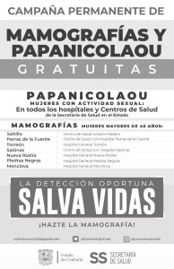 ES PERMANENTE LA DETECCIÓN DEL CÁNCER DE MAMA Y DEL VPH, EN COAHUILA