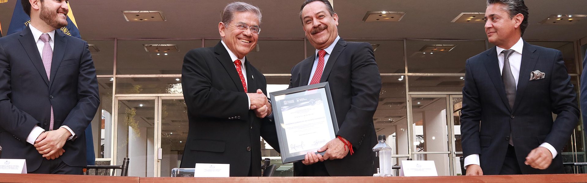Por su parte, el rector de la máxima casa de estudios, Salvador Hernández Vélez, dijo que a las instituciones educativas se les conoce por sus frutos y que la Facultad de Jurisprudencia es sinónimo de formación jurídica de calidad, pues por sus aulas han pasado grandes líderes que han tenido un impacto positivo con su labor, así mismo, destacó que su contribución social es amplia, pues gran parte de las leyes vigentes en Coahuila fueron redactadas por egresados del plantel.