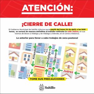 24 Abril 2023; Saltillo, Coahuila.- Ante el cierre a la circulación vehicular de dos tramos de la calle Juárez y la modificación de seis rutas del transporte público, la Comisaría de Seguridad y Protección Ciudadana desplegará un operativo a fin de agilizar el tráfico local.