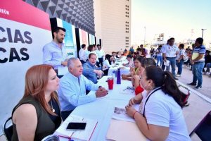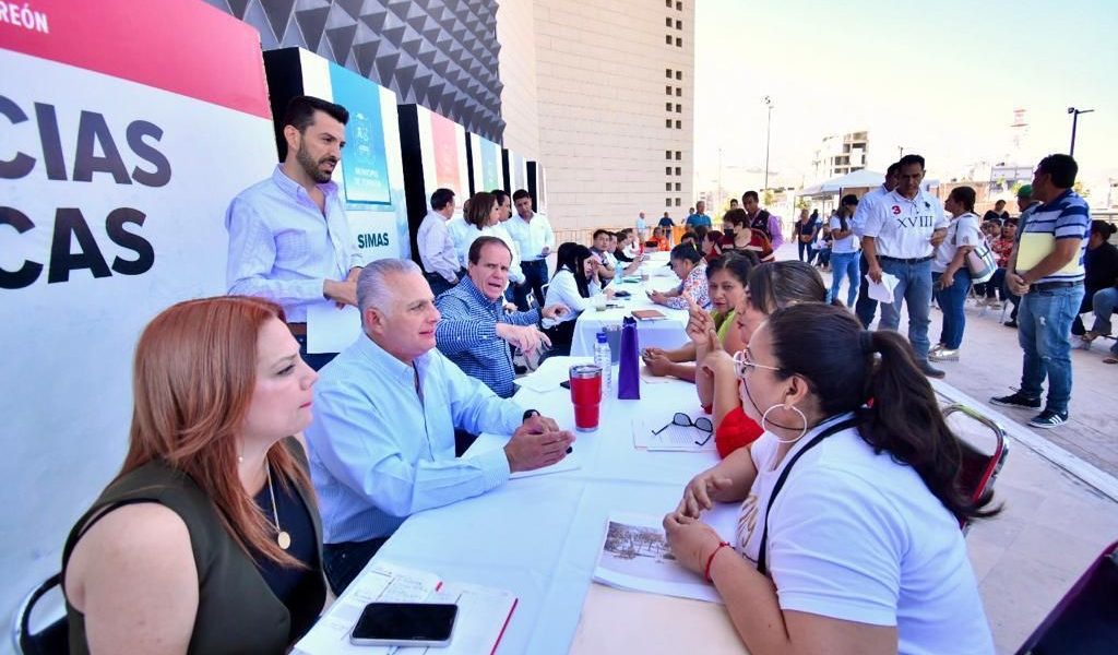 28 Abril 2023; Torreón, Coahuila.- El Alcalde Román Alberto Cepeda González encabezó este jueves la Audiencia Pública en la explanada de la Presidencia Municipal, lugar donde acompañado de los directores de las dependencias y organismos, atendió personalmente a la ciudadanía.