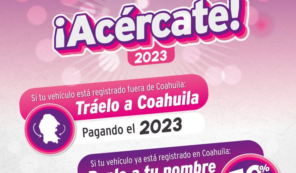 ‘TRÁELO A COAHUILA’ O ‘PONLO A TU NOMBRE’, Y PONTE AL CORRIENTE EN TU CONTROL VEHICULAR 2023