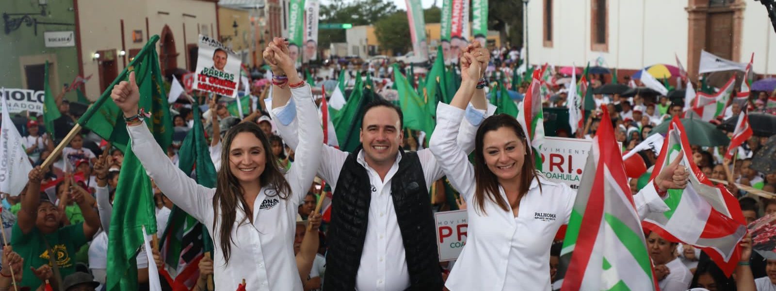 16 Mayo 2023; Parras de la Fuente, Coahuila.- Ante miles de parrenses, en medio de la lluvia y un gran ánimo, Manolo se comprometió a potencializar Parras, con más infraestructura social, turismo, seguridad y embellecimiento urbano.