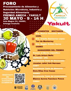 Invita UAdeC al Foro “Procesamiento de Alimentos y Nutrición: Microbiota, Industria y Seguridad Alimentaria” Premio AMECA-YAKULT