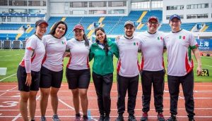 22 Mayo 2023; Saltillo, Coahuila.- Los coahuilenses Dafne Quintero y Sebastián García subieron al podio al conquistar medalla Por Equipos en Arco Compuesto, dentro de la Copa del Mundo de Tiro con Arco celebrada en Shangái, China.