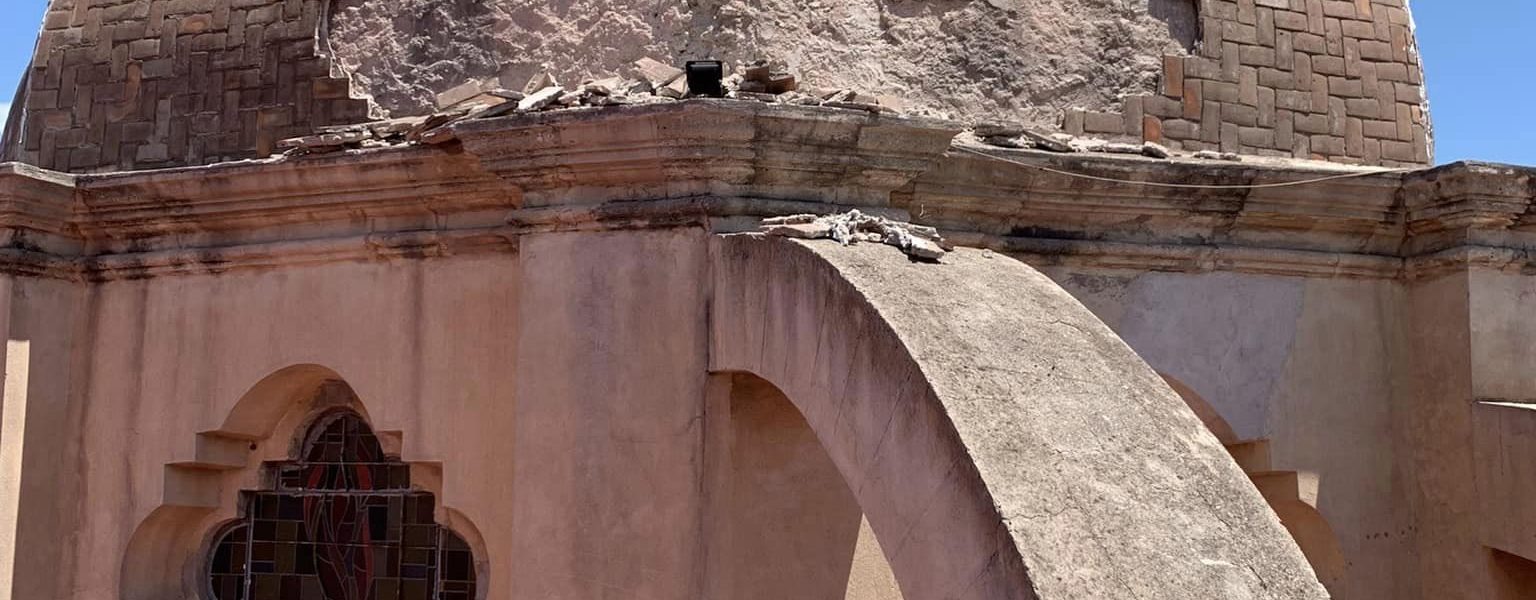 22 Mayo 2023; Monclova, Coahuila.- Los efectos climatológicos naturales que azotaron la región dejaron daños en nuestros edificios históricos, entre ellos la cúpula de la iglesia Santiago Apóstol. Ante esta situación, se ha convocado a arquitectos especialistas para intervenir y restaurar los daños ocasionados por los fuertes vientos y lluvias.