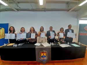 En la Sala de Competitividad de la Facultad de Sistemas Campus Arteaga, asistieron la directora de los Centros de Justicia y Empoderamiento para las Mujeres del Estado de Coahuila, Leticia Charles Uribe; signó el documento la titular de la Coordinación de Igualdad de Género de la UAdeC, Magdalena Jaime Cepeda; la titular del Instituto de Investigación para el Desarrollo Integral de la Mujer Universitaria (IIDIMU), Lorena Argentina Medina Bocanegra.