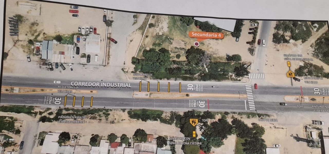 En el caso de la Secundaria No 4, que cuenta con una población escolar de 600 alumnos en sus dos turnos, 400 se trasladan a pie y 200 en transporte escolar y carros particulares. Actualmente, elementos viales apoyan en horario de entrada y salida de alumnos.