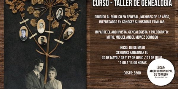 Impartirán curso de genealogía para conocer la historia familiar Por Alberto Casas 3 Mayo 2023; Torreón, Coahuila.- Como continuidad a las actividades que el Archivo Municipal de Torreón desarrolla en torno al estudio y la investigación de los datos…