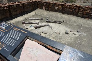 6.- Laboratorio Paleontológico: Aquí se exhibe la cola de un Hadrosaurio Pico de Pato, conformada por 53 vértebras y es la primera pieza de gran tamaño localizada en el Ejido Guadalupe.