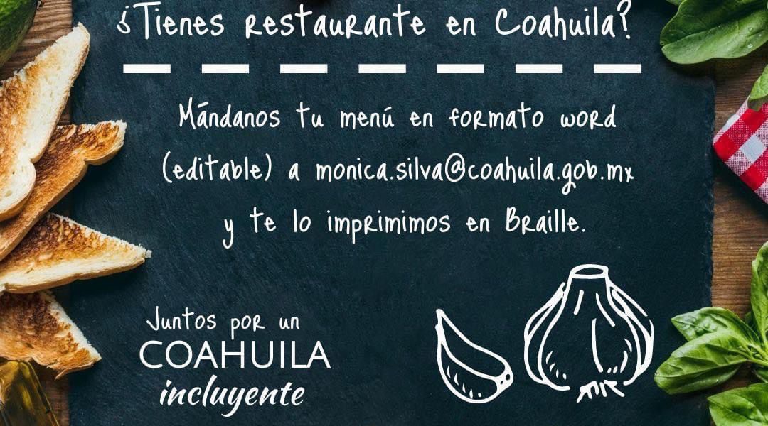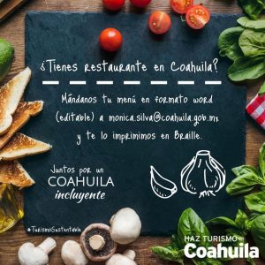 INVITA SECTUR COAHUILA A RESTAURANTES A SUMARSE A CAMPAÑA DE MENÚS EN BRAILLE