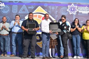 El alcalde Emilio de Hoyos Montemayor; el secretario del ayuntamiento Héctor Alberto de Luna Sánchez; la directora de Seguridad Pública Municipal Beatriz Gabriela Chapa Ramos y el regidor comisionado a Seguridad Pública Manuel Menchaca Flores, encabezaron la jornada de arranque, con la pinta de señalización, instalación de semáforo preventivo y entrega de equipo a oficiales de la Policía Municipal.