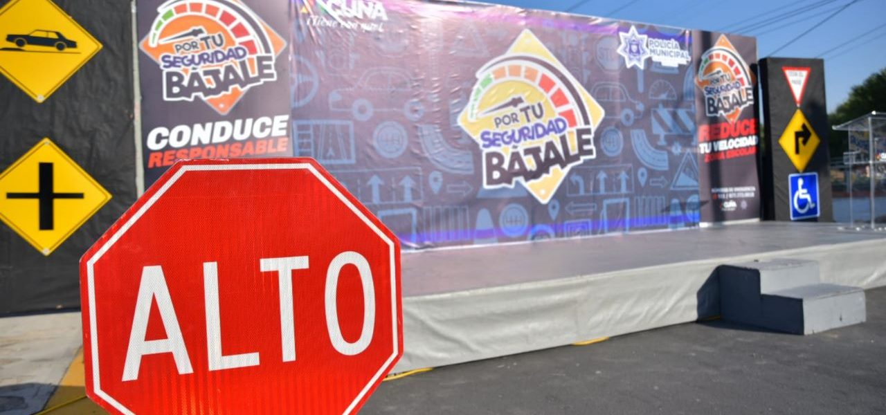 12 Julio 2023; Acuña, Coahuila.- Con la presencia de organismos comerciales e industriales, funcionarios públicos y directivos de la Secundaria Guillermo Roberto Canseco Sada, el Gobierno Municipal a través de Seguridad Pública y Obras Públicas, puso en marcha la campaña vial «Por tu Seguridad Bájale».
