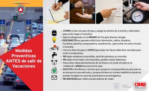 En tu destino, si visitan ríos, balnearios y lagunas, respeta las señales de Protección Civil, identifica los servicios de salud; si te expones al sol, protégete con bloqueador, sombrero y lentes oscuros; si vas a acampar, hazlo en lugares seguros y evita ubicarse en zonas de riesgo.