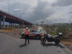 31 Julio 2023; Torreón, Coahuila.- Minutos después de las 15:00 horas de este sábado, elementos de la Dirección de Protección Civil y Bomberos de Torreón, en conjunto con agentes de la Dirección de Tránsito y Vialidad, realizaron el cierre a la circulación vehicular en el cruce del vado del Río Nazas, rumbo a la ciudad de Gómez Palacio, debajo del puente Solidaridad, lo anterior tras detectarse la presencia de agua en el lecho seco.