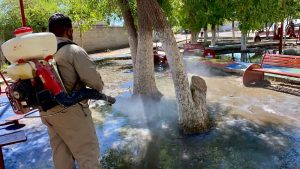 “En las tardes, andarán otras máquinas realizando la nebulización espacial, previamente se realiza un perifoneo para comentarles a las y los ciudadanos que cuando escuchen el sonido de las máquinas abran sus puertas y ventanas”, dijo.