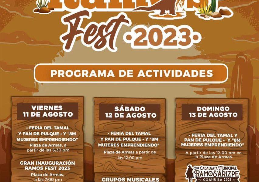 12 Agosto 2023; Ramos Arizpe, Coahuila.- Con el propósito de fomentar las tradiciones y la unión entre las familias, el gobierno municipal realizará el “Ramos Fest 2023”, desde hoy por la tarde y hasta el domingo, con amplio programa que incluye callejoneada, la “Feria del Tamal y Pan de Pulque”, y la “Segunda Cabalgata Municipal” que tendrá la participación estelar del grupo La Leyenda.