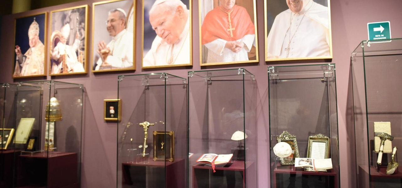 También hay solideos utilizados por el Papa Francisco y por el Papa Benedicto XVI, el anillo de San Juan Pablo II, un cáliz del Papa Pío XI, la capa pluvial del Papa Clemente XII, y el frontal del Papa Alejandro VII.