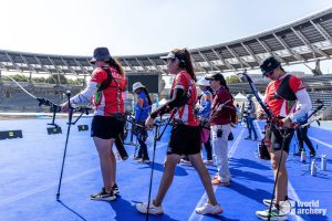 18 Agosto 2023; Saltillo, Coahuila.- El equipo mexicano conformado por la coahuilense Ángela Ruiz, Aída Román y Alejandra Valencia, se quedó cerca de subir al podio dentro de la última Copa del Mundo de Tiro con Arco 2023, que se celebra en París, Francia, luego de terminar en el cuarto sitio en la Modalidad del Arco Recurvo.