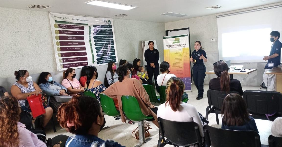 Con el apoyo del “Violentometro”, elementos policiales explicaron la agresión física, psicológica, sexual, económica y patrimonial que puede ejercerse contra la población femenina, y los indicadores para detectar este tipo de situaciones.