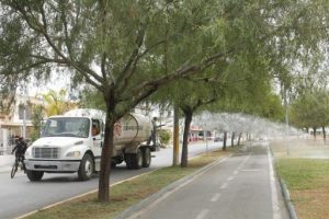 Actualmente dos de un total de cinco bombas se encuentran en funcionamiento, las tres dañadas serán sustituidas, mientras tanto el personal de la dependencia riega la Línea Verde diariamente con 10 pipas de agua tratada, que equivale a 180 mil litros.