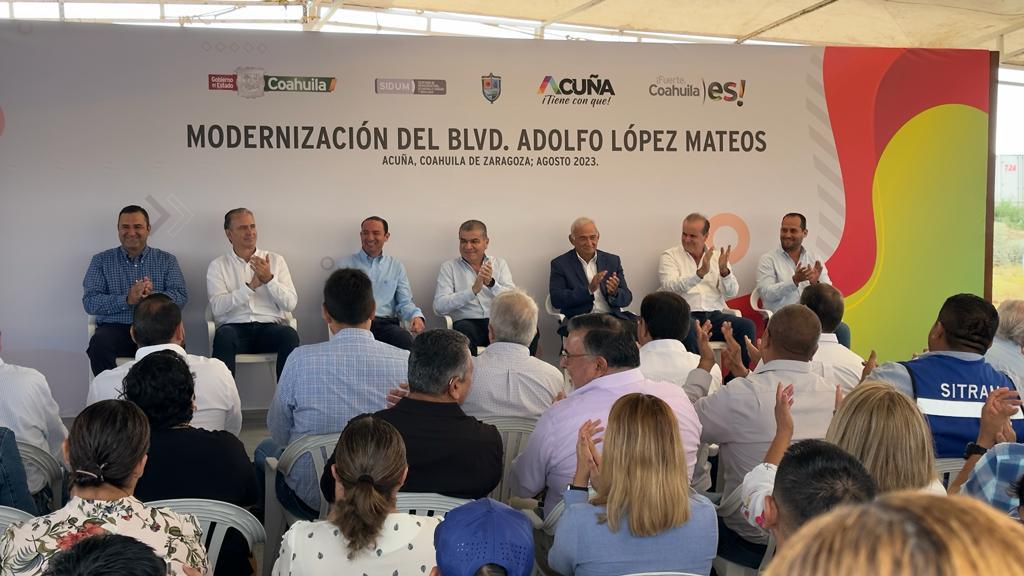 24 Agosto 2023; Acuña, Coahuila.- Obras de infraestructura por 57.7 millones de pesos inauguró y puso en marcha el gobernador Miguel Ángel Riquelme Solís en este municipio, como parte de la modernización de la Carretera a la Presa de La Amistad y la Colonia Fundadores.