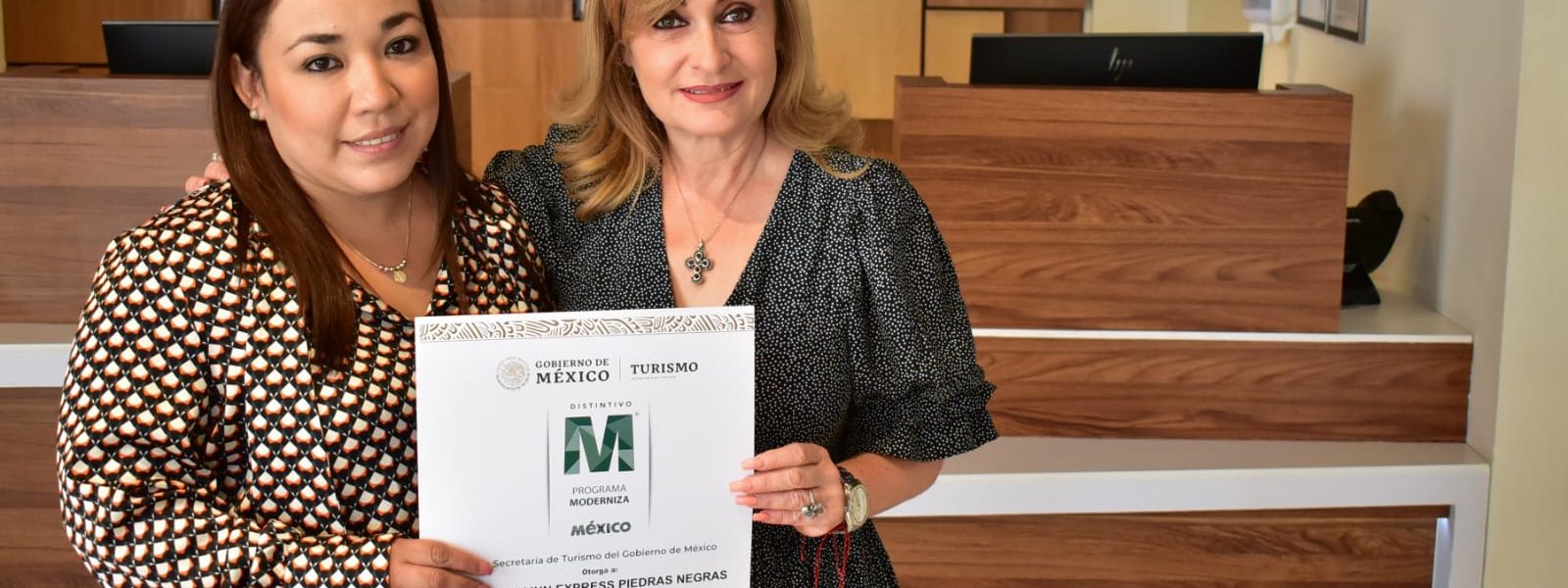 En Piedras Negras, la titular de SECTUR estatal entregó el Distintivo “Moderniza” al hotel “Holiday Inn Express”, y en Acuña entregó este Distintivo y el de “Punto Limpio” al hotel “Los Alpes”, donde estuvo acompañada del Director de la OCV de esta frontera, Fernando Berain.